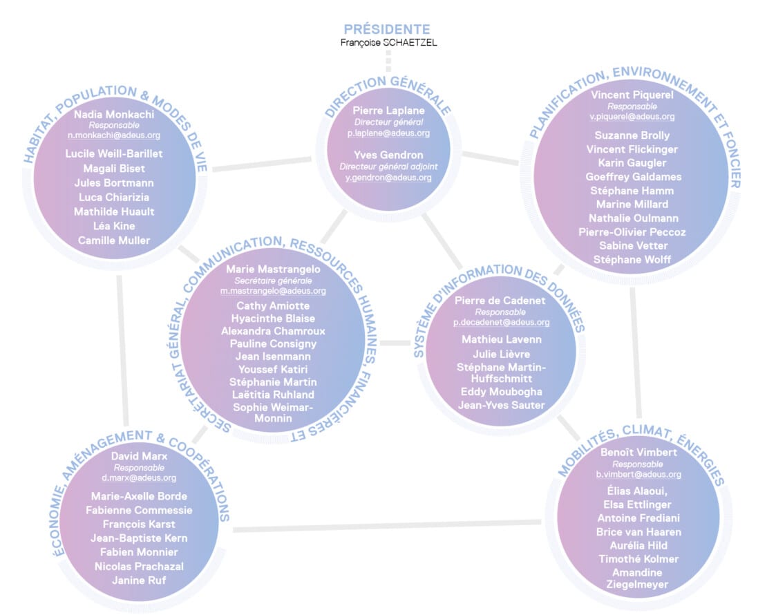 La force d’une agence d’urbanisme repose sur le caractère pluridisciplinaire de son équipe et donc sur la diversité de ses compétences. L’Adeus emploie des architectes-urbanistes mais aussi des géographes, des économistes, des sociologues, des démographes, des ingénieurs, des informaticiens… Et c’est en croisant leurs idées que naissent les meilleures réflexions !