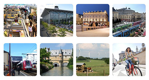 Pour ce faire, les agences d’urbanisme ont fait le choix, pour mesurer l’enjeu transfrontalier, d’analyser en détail les grandes évolutions et tendances socio-démographiques internes à la région et chez ses proches voisins. Cette étude permet de dégager une typologie des territoires frontaliers en fonction de leurs enjeux et pourrait aboutir à des politiques régionales différenciées en fonction des spécificités territoriales mises en avant. Dans un deuxième temps, le document aborde la problématique transfrontalière sous l’angle de l’attractivité du territoire vis-à-vis de ses voisins. Pour cela, l’analyse se porte tout d’abord sur différents exemples comme les domaines de la santé, de l’innovation, de l’enseignement supérieur ou de l’immobilier de bureaux. Ces aspects révèlent l’enjeu des concurrences et des complémentarités que peut susciter le phénomène frontalier sur les espaces métropolitains du Grand-Est. L’attractivité se mesure notamment par la capacité qu’ont les villes et les métropoles à créer des liens de coopération avec les métropoles voisines frontalières. Le document se focalise ensuite sur les grandes infrastructures de transports et les eurocorridors qui traversent la région et qui sont à l’origine de nombreux aménagements, souvent générateurs de développement économique, chez nos voisins.