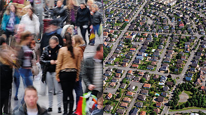 Le processus de périurbanisation, en oeuvre depuis plusieurs décennies, a conduit à une certaine déconcentration de la population et à son éparpillement. Les grands pôles urbains régionaux (Strasbourg, Mulhouse, Colmar) qui abritaient trois alsaciens sur dix en 1968 ont peu à peu vu leur poids démographique diminuer au profit des villages, et en comptent aujourd’hui moins d’un sur quatre.
