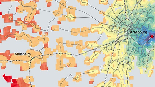 Les habitants du Bas-Rhin habitent en moyenne de plus en plus loin de leur lieu de travail et parcourent par conséquent au quotidien des distances de plus en plus longues pour aller travailler.