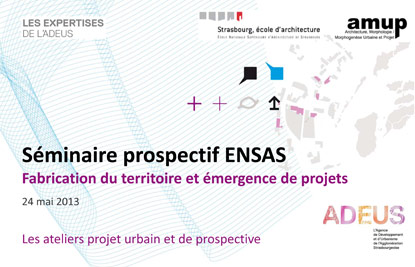 L’objectif du séminaire est de réunir des techniciens de l’urbain transfrontaliers afin d’échanger et débattre autour de l’émergence de nouvelles « figures et outils » de la fabrique du territoire. Ces travaux sont rattachés aux séminaires « Cultures de projet » du laboratoire AMUP (Architecture, Morphologie/Morphogenèse Urbaine et Projet) de l’ENSAS. Les interventions prévues dans cet un atelier ou « think tank » sont destinées à faire connaitre les méthodes et les outils actuels relatifs à la construction de l’espace métropolitain strasbourgeois.